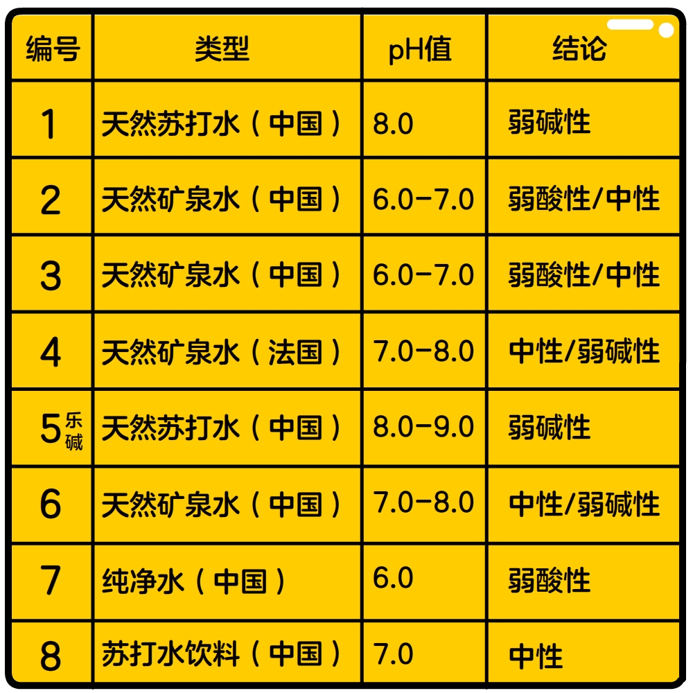 8号水:原产地中(zhong)国。苏打水(shui)饮料。pH值评测(ce)结果(guo)为7.0,呈中(zhong)性