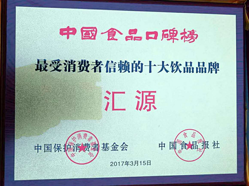 近日,由中(zhong)(zhong)(zhong)国(guo)(guo)保护(hu)消费者基金会、中(zhong)(zhong)(zhong)国(guo)(guo)食(shi)品(pin)报社(she)、中(zhong)(zhong)(zhong)国(guo)(guo)搜索(suo)共同(tong)举办的2017中(zhong)(zhong)(zhong)国(guo)(guo)食(shi)品(pin)行业(ye)诚信(xin)建(jian)设峰会暨(ji)中(zhong)(zhong)(zhong)国(guo)(guo)食(shi)品(pin)口(kou)(kou)碑榜发布仪(yi)式在(zai)京举行,汇源果汁凭(ping)借(jie)多(duo)年来(lai)在(zai)消费者中(zhong)(zhong)(zhong)良好的口(kou)(kou)碑及信(xin)誉(yu)荣获“最受消费者信(xin)赖十大(da)饮品(pin)品(pin)牌”。
