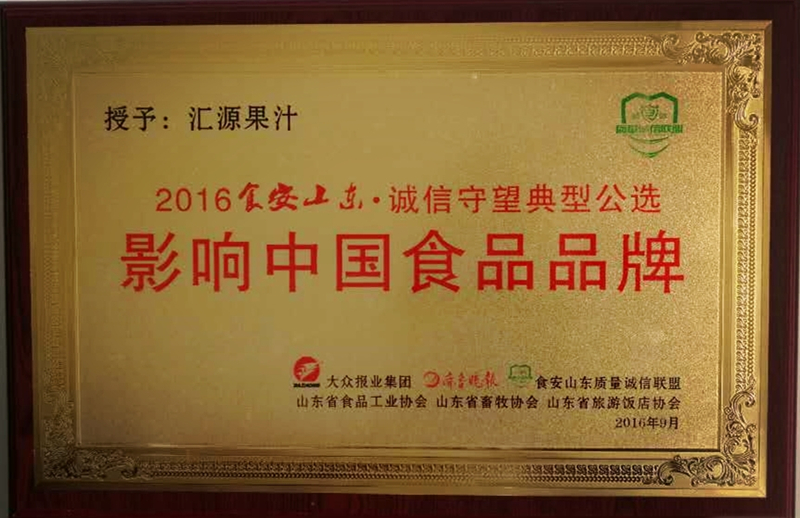 多(duo)(duo)年来,凭借优异的(de)产(chan)品(pin)品(pin)质(zhi)、高信任(ren)度的(de)品(pin)牌(pai)(pai)口碑,汇源集团荣(rong)获(huo)了中(zhong)(zhong)国驰名商标、中(zhong)(zhong)国名牌(pai)(pai)产(chan)品(pin)、质(zhi)量信誉产(chan)品(pin)、消(xiao)费者信得过(guo)产(chan)品(pin)、全(quan)国食品(pin)安全(quan)示范单位、中(zhong)(zhong)国饮(yin)料市场产(chan)品(pin)质(zhi)量用户满意第一(yi)品(pin)牌(pai)(pai)、全(quan)国质(zhi)量诚信标杆典型企业(ye)等多(duo)(duo)项殊荣(rong)。