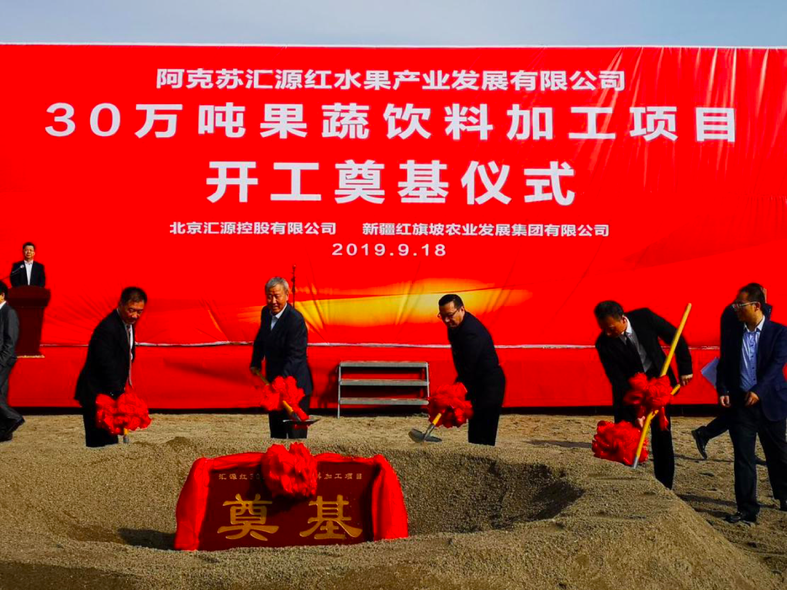 签约仪(yi)式后,各(ge)位领(ling)导及嘉宾(bin)在(zai)阿(a)克苏温宿国家农业(ye)(ye)科技园区,举行了“汇源红(hong)30万(wan)吨果(guo)蔬饮(yin)料(liao)加工(gong)项目”的(de)开工(gong)奠(dian)基(ji)仪(yi)式。汇源集团副(fu)董事(shi)长兼执行总裁(cai)申乐峰在(zai)奠(dian)基(ji)仪(yi)式上(shang)致辞(ci),他强调,新疆(jiang)阿(a)克苏也是汇源践(jian)行大农业(ye)(ye)梦想的(de)重要阵地。汇源将(jiang)结合自身的(de)资源优(you)势(shi),通过盘活(huo)阿(a)克苏林果(guo)产业(ye)(ye)优(you)势(shi),助(zhu)力(li)当(dang)地经济(ji)高质量发(fa)展,带动农民(min)增(zeng)(zeng)产增(zeng)(zeng)收,相信在(zai)不久的(de)将(jiang)来,阿(a)克苏林果(guo)产业(ye)(ye)发(fa)展将(jiang)迎来全新的(de)局面。