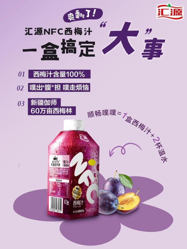 截至目前,新疆汇源新梅产业发展有限公司总投资达10亿元,年加工能力突破10万吨,配置NFC果浆、浓缩汁、烘干等进口生产线,全面落实从西梅鲜果、西梅果干、西梅浓缩果汁、西梅原浆、西梅原汁等在内的产品加工与销售。其中汇源西梅干、西梅汁畅销于全国各地,覆盖商超、餐饮、商场、电商等多元渠道。