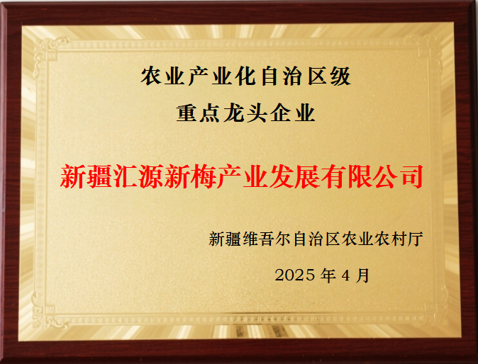 近日,新疆维吾尔自治区农业农村厅公布《2024年自治区农业产业化重点龙头企业名单》(以下简称名单),新疆汇源新梅产业发展有限公司光荣上榜,获评“农业产业化重点龙头企业”。