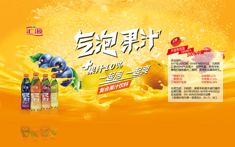 2017年5月(yue)1日起-2018年4月(yue)30日止,凡购买汇(hui)源500ml气泡果(guo)汁(zhi),拧开瓶盖,使(shi)用手机(ji)