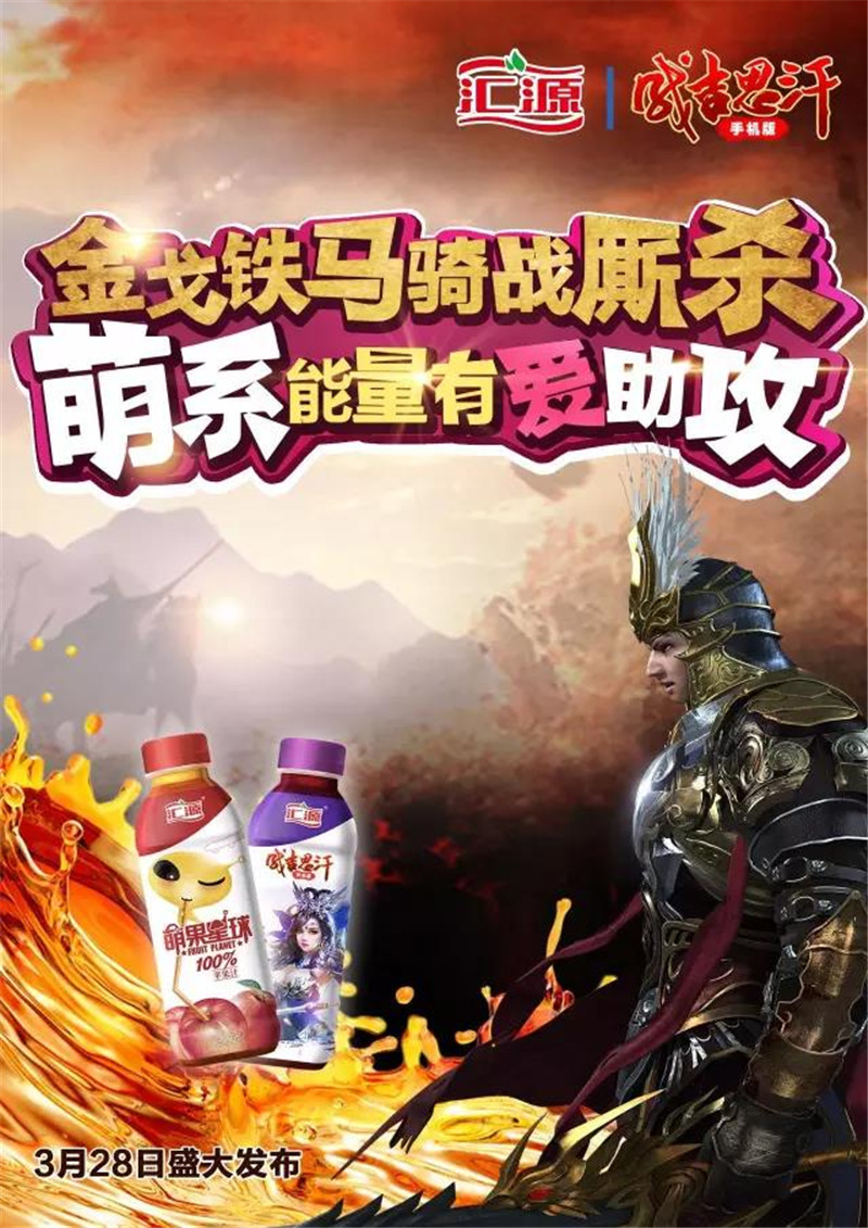 3月28日,汇源(yuan)萌(meng)果(guo)(guo)星球&成吉思(si)(si)汗手(shou)游发(fa)布会举行,“国(guo)民(min)果(guo)(guo)汁(zhi)”汇源(yuan)携手(shou)跨版图征(zheng)服国(guo)战《成吉思(si)(si)汗手(shou)机版》展开跨界合作。据了解,自今年3月至(zhi)12月,汇源(yuan)萌(meng)果(guo)(guo)星球将携手(shou)《成吉思(si)(si)汗手(shou)机版》发(fa)售1000万瓶(ping)“成吉思(si)(si)汗版”萌(meng)果(guo)(guo)星球果(guo)(guo)汁(zhi),同步(bu)推出玩家(jia)促销活(huo)动。汇源(yuan)将手(shou)游中的人物(wu)角色印刷在萌(meng)果(guo)(guo)星球产品包装(zhuang)上(shang),通过品牌(pai)跨界衍生品,创造联合IP及更契合消费者心理诉求的产品形(xing)象。